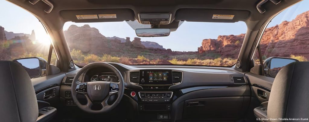 Get away from it all without giving anything up. The interior of the Passport is precisely crafted for the explorer in all of us. For that special type of Canadian cold, the Passport features a heated leather-wrapped steering wheel and heated front and available second-row seats, while the available ventilated front seats help you keep your cool when the temperature rises.And because leading the way is as tough a job as any, the driver’s seat features 10-way power adjustment including power lumbar support and an armrest with available adjustability. In a hurry? The Passport also features a proximity key entry system with pushbutton start.Key Features: Steering wheel-mounted paddle shifters, available body-coloured front and rear parking sensors, available leather-trimmed seating surfaces, USB device connectors.